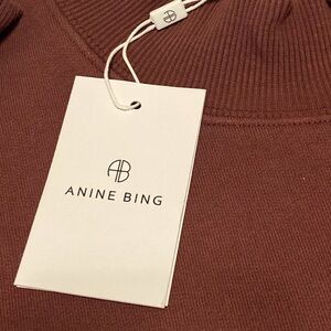 ANINE BING Burgundy Bradie 'Bing' Sweatshirt NWTS Rib Mock Neck Size Medium