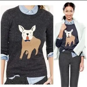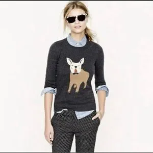 J. Crew Charcoal preppy Sweater with Dog Design
