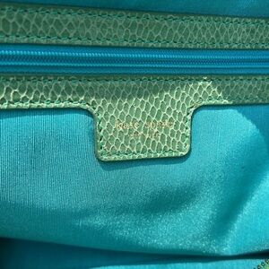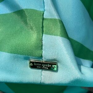 Fun Kate Spade tote with green and blue stripes. Features a bow detail. Top zip closure. Clean interior with zipper pocket. Excellent condition.