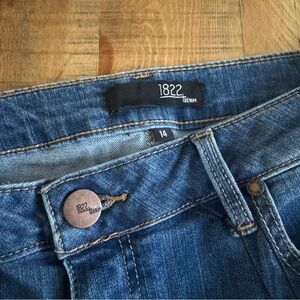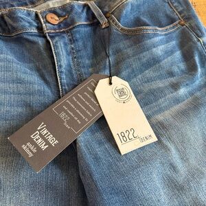 1822 Denim Women's Cropped Blue Jeans with Frayed Hem