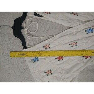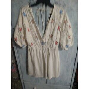 Embrace your inner bohemian with this gorgeous ASOS mini dress. The floral pattern and puff short sleeves give it a playful and feminine touch, while the embroidered accents add a unique and delicate detail. The dress is made of a comfortable cotton blend and is perfect for any occasion, whether it's a casual day out, a cocktail party, or even for workwear.