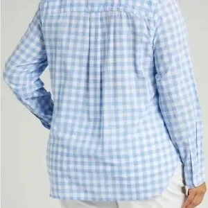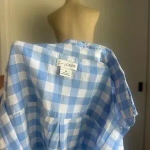 Chic gingham shirt by J. Crew. Light blue and white pattern. Ideal for casual outings.