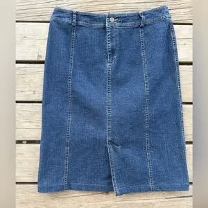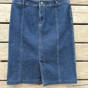 Flattering and classic, this Tribal stretch denim skirt features slimming vertical seam panels and a front slit for comfort and ease of movement. A versatile wardrobe staple that pairs beautifully with everything from cozy sweaters to tucked-in tees.