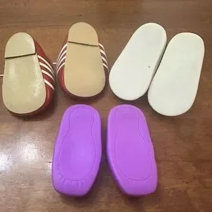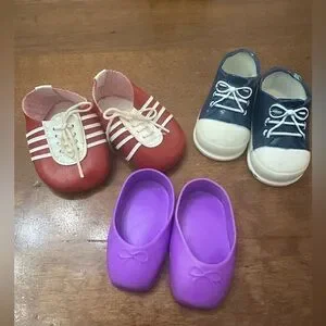 3 pair blue, red & purple doll shoes for 18” or 15”