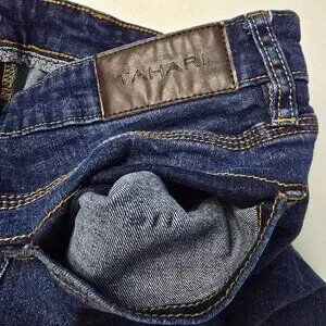 These Tahari men’s jeans are a size 32x30 and made from a comfortable 99% cotton, 1% spandex blend for just the right amount of stretch. Pre-owned with signs of wear, including some light puckering to the fabric, possibly from heat exposure, but still plenty of life left.
