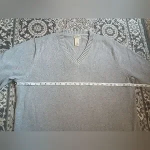 ll Bean Mens V Neck Sweater XL Gray Cotton Heavy Knit Normcore Preppy Outdoor