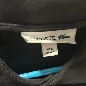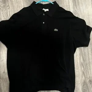 Sleek black polo by Lacoste. Features signature crocodile logo.