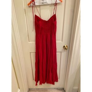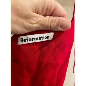 Elegant red maxi dress by Reformation. Features a flowing silhouette and thin straps.
