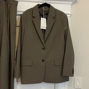 Cute oversized khaki suit by COS. Fabric color is a khaki olive tone, and both pieces are sized 14. Available either as a full suit or as individual pieces (feel free to message me). Never worn, new with tags.