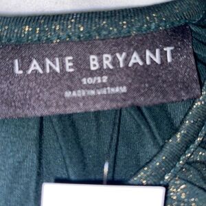 Chic Lane Bryant blouse with glittering black and gold design. Ideal for evening wear.
