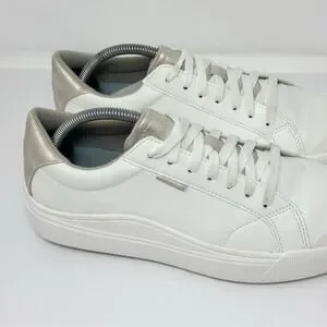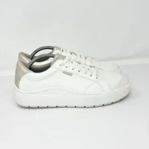 Dr Scholl's Women's Time Off Sneaker Size 9.5M White Gold Faux Leather.