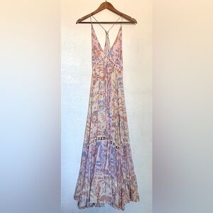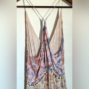 Free People Maxi Dress with pastel pink/blue florals.