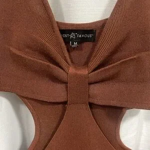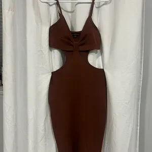 Step out in style with this elegant brown cut-out dress. Perfect for any occasion, this dress offers a chic and modern look.