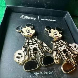 Post earrings, Mickey Mouse dressed as a skeleton. His head is attached to the post earrings, and the body dangles on a hinge. Adorable. Brand new. BaubleBar collab with Disney