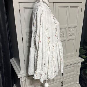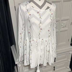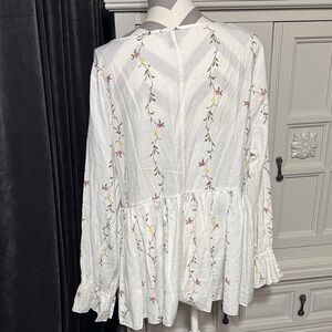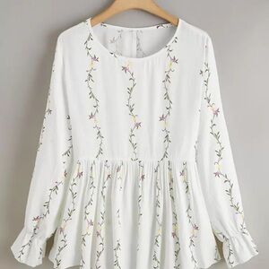 Floral Embroidered White Peplum Blouse by SHEIN Size 1X Curve