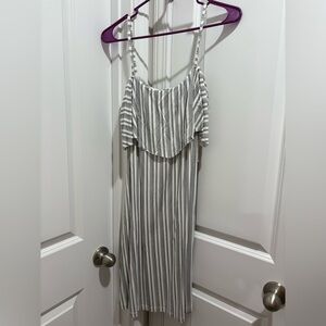 Chic off the shoulder dress with elegant stripes. Ideal for casual wear.