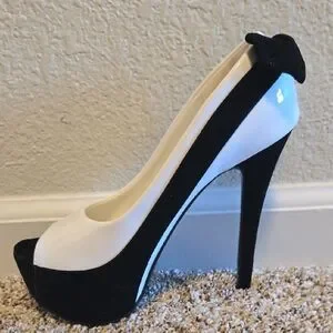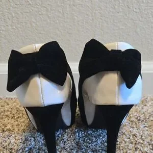 Step out in style with these elegant black and white peep toe heels. Perfect for adding a chic touch to any outfit.