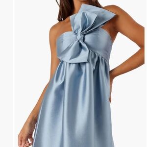 An eye-catching bow sits at the bodice of this gorgeous one-shoulder gown made from lustrous duchesse satin and finished with a dramatic flounce at the hem.