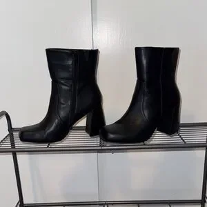 Pre-loved condition, but they are stunning and look new. One slight scratch, see pictures. Easy zip up, chunky heel. So flattering with any outfit.