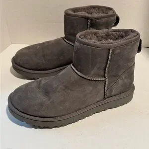 Warm and stylish gray suede ankle boots. Perfect for cold weather.
