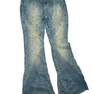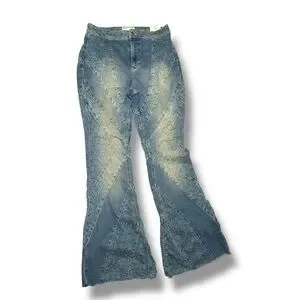We The Free Free People mermaid Flare Jeans Vintage Blue 31 paisley