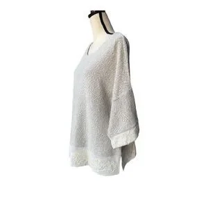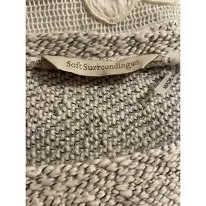 Soft Surroundings Sweater Pullover Size Petites XL White Black Embroidery Accent