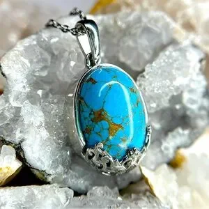 Who doesn’t love some TURQUOISE? This pendant is lovely and unique. The Turquoise can be seen having an amazing blue and gold streak appearance! 🩵
