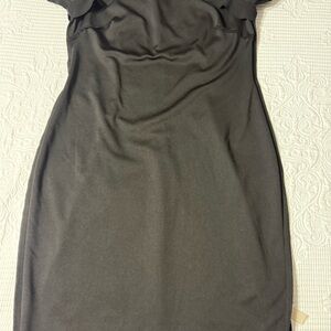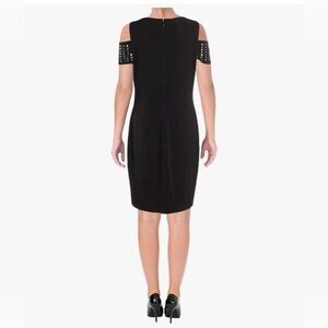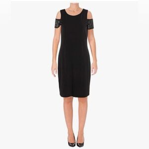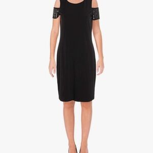 Chic black dress with studded cold shoulder design. Perfect for stylish outings.