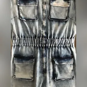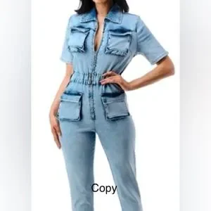 Elevate your style with this light blue utility jumpsuit. Perfect for a chic and casual look.