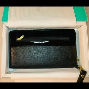 One Odd Bird Womens Black Leather Raven Zip Up Wallet and Wristlet