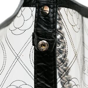 This bucket bag features a PVC body with leather trim, flat leather and chain strap, and a top zip closure. Product Condition Details: Exterior Back Scratched. Embellishment Damage, Scratched. Exterior Front Scratched. Exterior Front stained with Other. Zipper Scratched. Inclusions: Pouch, No longer comes with original accessories. Country of Origin: FRANCE. Serial Number: 25855361