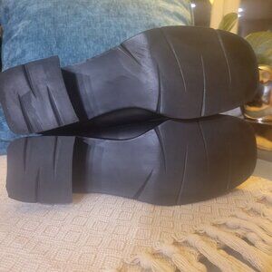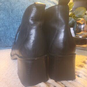 The "perfect-black-leather-goes-with-everything" boot! lace-up, 2" chunky heel, squared off toe, above ankle boot. Soft leather upper and rubber sole. Like new condition.