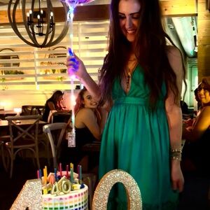 . worn once for my 40th birthday party and dry cleaned within three days. she has been hanging all alone ever since