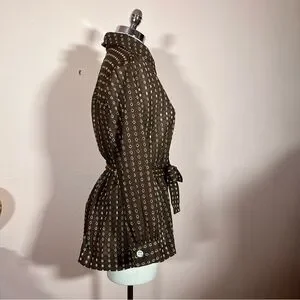Vintage 1960 70 Dalton MCM Brown lace Tie Waist Belted Button Down shirt Jacket
