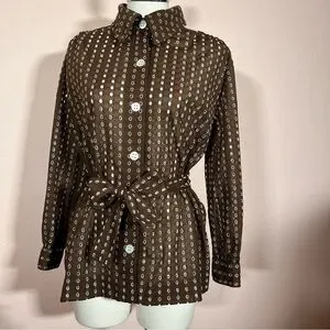 Vintage 60 70 Dalton MCM Brown lace Tie Waist Belted Button Down shirt Jacket