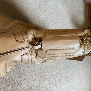 Authentic Anya Hindmarch quilted leather hobo shoulder bag in cream genuine leather with gold tone hardware and accents. This piece is in excellent lightly used condition with little to no signs of wear! Very clean inside and out.