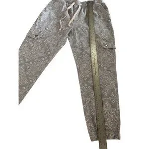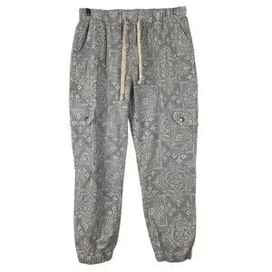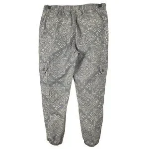 Light Bluish Gray Paisley Cargo Jogger Pants With Elastic Waist & Drawstring