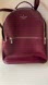 This is the Lena Double Zip Large Dome Backpack. It is an elegant deep red with sleek zippers. Pebbled leather. Perfect for daily use.