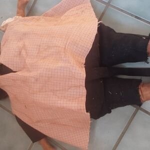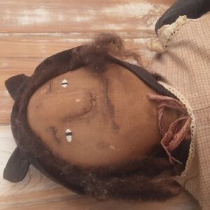 Charming vintage rag doll wearing a brown dress. Unique handcrafted details.removale cat ear hood, also has a cat tail sewn on back of outfit