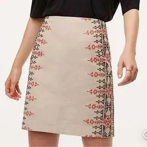 LOFT Tribal Cream Embellished Pencil Skirt Knee-Length Resort Wear