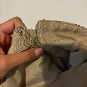 This elegant cream pencil skirt from LOFT features intricate embellishments that add a touch of sophistication to its classic knee-length silhouette. Perfect for resort wear, the skirt's structured design ensures a flattering fit, making it a versatile addition to any casual wardrobe.
