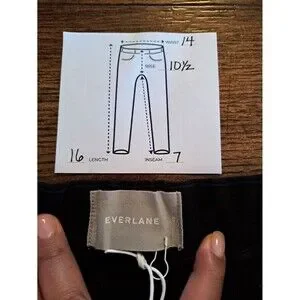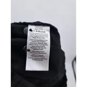 These black Everlane shorts are perfect for a casual summer, fall or spring day. The elastic waist and stretchy Spandex and cotton blend material make them comfortable for activities like walking and golfing. The shorts have a preppy chino style with a high rise and flat front, and feature slash pockets for added convenience. These shorts are machine washable and are made from twill fabric. The size is Small with a waist size of 28 inches and an inseam of 7 inches. The closure is a simple pull-on design. The shorts are a regular fit and come from the Women's Clothing department.