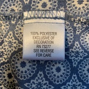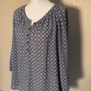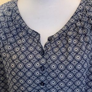 Women’s size large. Croft & Barrow women’s blouse. 100% polyester. Navy print. 3/4 length sleeves. 5 button front. Bust measures 48”. Length is 25”. Very good condition. (2/8-15)