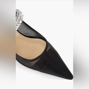 The sister design duo expands their effervescent collection of fantasy shoes with a pointy-toe stiletto pump fashioned from breathable mesh adorned with an opulent crystal strap.