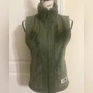 Stay cozy with this olive fleece vest. Perfect for layering. Features a full zip front. Side zip pockets.