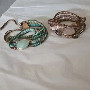 These stunning wrap bracelets feature blends of turquoise and pink beads, perfect for adding pops of color to any outfit. The intricate design and vibrant hues make it an exotic must-add accessory. NIB