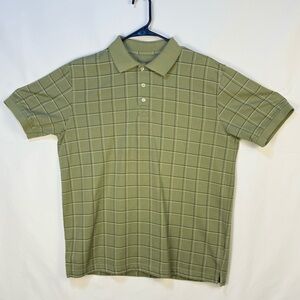 Van Heusen Men's Olive Green Checkered Plaid Polo Size M ~ Excellent