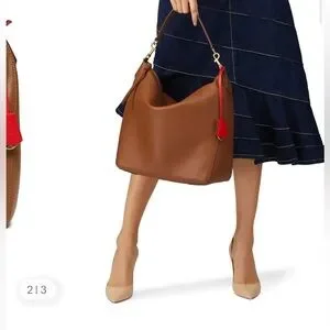 Gorgeous soft buttery leather, red leather interior, mine did not come with the red attachment shown in the first stock photo. Only worn twice and no flaws to note. Looks gorgeous when using! Comes with TB dustbag it came with!