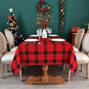 58 x 84 Inch Rectangular Waterproof Checkered Tablecloth for Indoor and Outdoor Use - Christmas Tablecloth for Kitchen, BBQs, and Parties. In perfect condition, used without label.