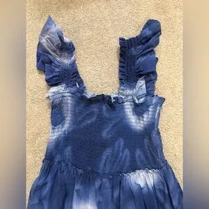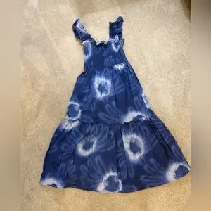 Tuckernuck Rory Blue Dye Ruffle Sleeve 100% Cotton Midi Sundress Small